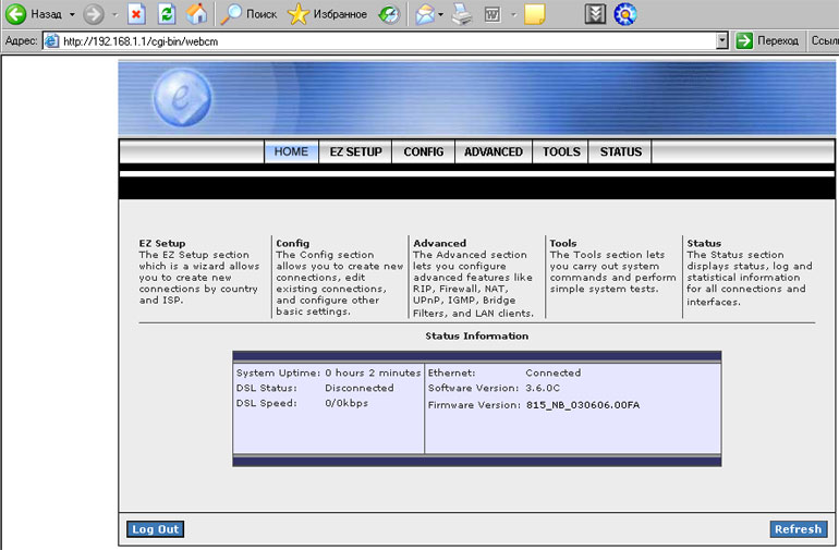 ADSL модем / маршрутизатор перезагрузится. После этого настроить