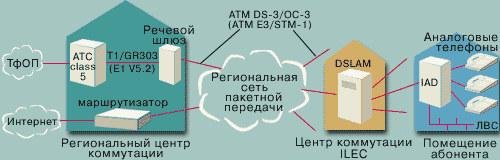 VoDSL. Этот шлюз между сетью пакетной передачи и телефонной сетью общего пользования (ТФОП) размещается в региональном центре