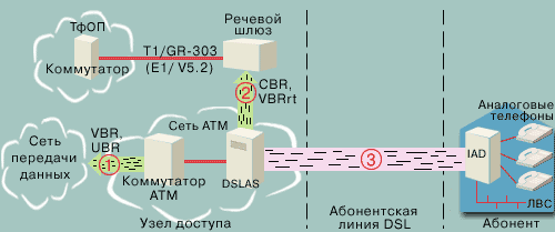 ATM, которые далее поступают в DSLAS, что обеспечивает требуемое качество телефонного разговора.