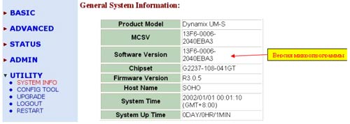 новыми стандартами производства "Green Line". Для SHDSL модемов/маршрутизаторов серии Dynamix UM-S линии "Green Line" была выпущена новая версия микропрограммы - 204. В ней сохранены все достоинства микропрограмм для модемов серии Dynamix UM-S, однако недавно была выявлена некоорректность при работе с устройствами серии Cisco Catalyst. Для локализации этой неточности, до выхода новой корректной микропрограммы, Dynamix рекомендует : Сменить микропрограмму для SHDSL модемов/маршрутизаторов Dynamix UM-S на версию - 205, которая с Cisco Catalyst работает корректно. Процедура смены микропрограммы для Dynamix UM-S описана ниже: Проверка версии микропрограммы для Dynamix UM-S 1. Установить на компьютере IP адрес 192.168.0.2 2. Подключить Ethernet разъем Dynamix UM-S к Ethernet разъему компьютера сетевым кабелем 3. Открыть окно веб броузера и набрать IP адрес Dynamix UM-S (по умолчанию IP адрес = 192.168.0.1) Ввести логин и пароль (по умолчанию "root", "root") 4. Зайдите в меню «UTILITY», выберите пункт «SYSTEM INFO» и проверьте версию микропрограммы для Dynamix UM-S (строка таблицы "Software Version") Скриншот экрана для микропрограммы версии 205 или 206 Скриншот экрана для микропрограммы версии 204 ![]() Процедура обновления микропрограммы для Dynamix UM-S 1. Обеспечить бесперебойное питание для Dynamix UM-S и компьютера, с которого будет производиться обновление 2. Установить на компьютере IP address 192.168.0.2 3. Подключить Ethernet разъем Dynamix UM-S к Ethernet разъему компьютера сетевым кабелем 4. Открыть окно веб броузера и набрать IP адрес Dynamix UM-S (по умолчанию IP адрес = 192.168.0.1) Ввести логин и пароль (по умолчанию "root", "root"). Это главное меню: ![]() 5. Зайдите в меню «UTILITY», выберите пункт «UPGRADE»: