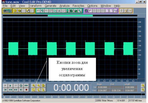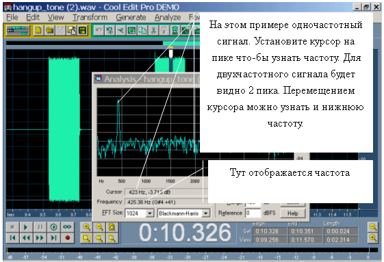 Для анализа можно воспользоваться также демо-версией программы “CoolEdit Pro” (http://cooledit.com)