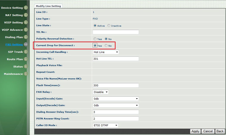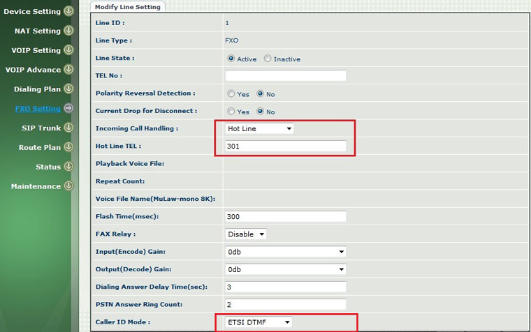 Dynamix FXO-04 поддерживает альтернативную функцию определения по падению или разрыву линии на PSTN или офисной АТС. Для этого установите в настройках каждой FXO линии в пункте