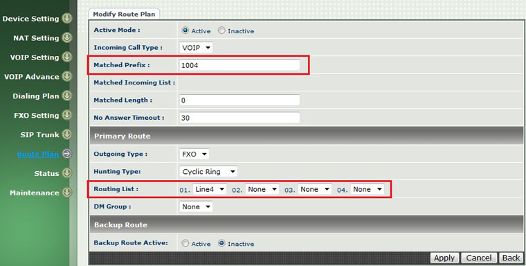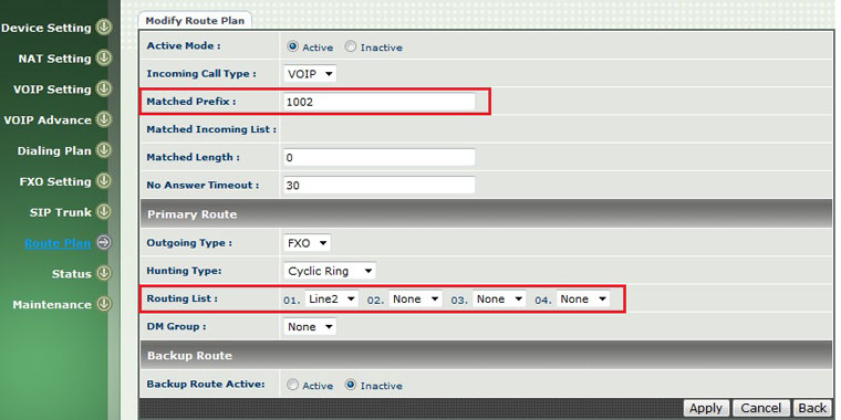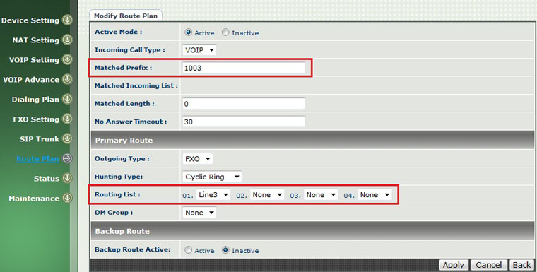 Для определения номера звонящего абонента из PSTN линии установить в пункте Outgoing Caller ID: PSTN Caller ID. 3.3. Настроить Route Plan для каждой FXO линии как на рисунках ниже.