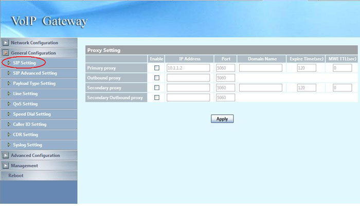 Настройки VoIP шлюза с IP-адресом