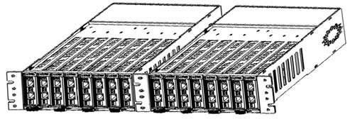 Dynamix UR-V8 - 2U 10" 8-слотовое шасси с одним внутренним AC или DC источником питания. Шасси Dynamix UR-V8 предназначено для установки до 8 компактных VDSL2 сетевых удлинителей Dynamix UM-V2. Шасси не требует дополнительных внешних источников питания. Шасси Dynamix UR-V8 может быть использовано для настольной установки или монтироваться в 19" стойки (2 шасси могут быть объединены для монтажа в 19" стойки См. Рис. ниже). | ||||||||||||||||||||||||