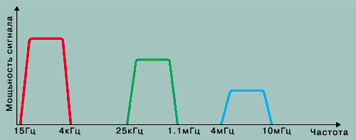 фильтров устройства, относящиеся к одной службе, могут обмениваться информацией, не оказывая никакого влияния на устройства, работающие в другом частотном диапазоне. В результате в одной паре телефонных проводов организуется три