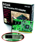 В нашем обзоре участвовали две сетевые карты D-Link DHN-520 и мост "HomePNA 2.0 to 10/100 Ethernet" DHN-1000.